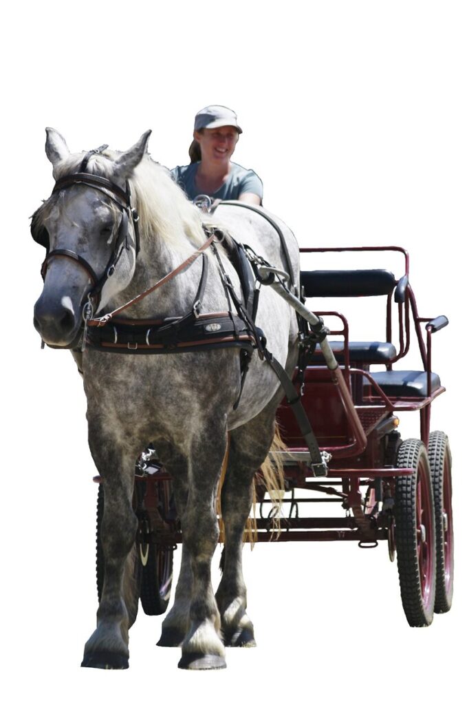 Prenez un temps calme, confortablement installé dans une calèche, en compagnie d’Ingrid, meneuse diplômée, et de Ladie, jument percheronne.